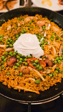 Oyo - Oyo cooking is inspired by the term “muxalace” which suggests a pot of diverse flavors and heritages while trying back to its Guyanese origins. Oyo cooking incorporates dishes from the Caribbean, West Africa, South America, and Eastern Asia. We tried Fried Green Plantains, Dhalpuri Roti, Pholorie, and Paella de Vegan. Everything was delicious, highly recommend trying Fried green plantains and Paella.