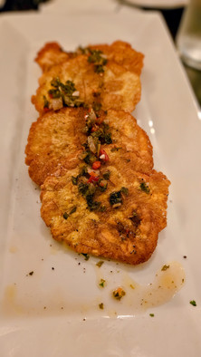 Ruby & Roses - It is a legendary historical estate that has been transformed into an elegant dining experience. I loved the ambiance, decor, music, food, and service. We got Spicy ciopino pasta and Tamale ravioli.